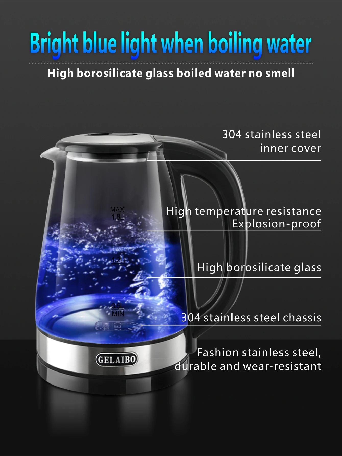GELAIBO electric glass kettle has a stunning look and the transparent design, make it even more attractive. The indicator technology which indicates heating will automatically to light up as the heating starts and auto shut off after boiled. The delicate yet classy looking glass kettle works like a charm and adds beauty to your kitchen.