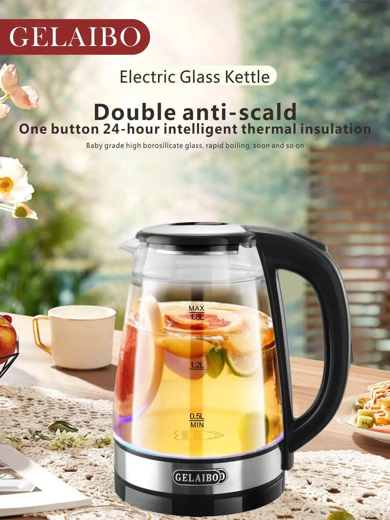Kitchen Glass Electric Kettle,1.8L Double Layer Scald Resistant Hot Water Boiler, 1500W Fast Boiling,Ideal For Home & Travelling